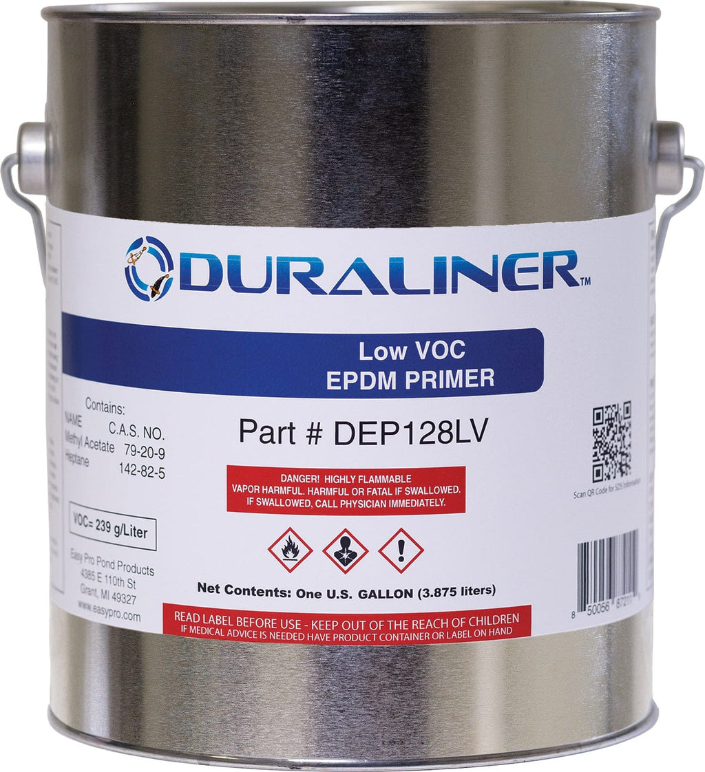 Use of DuraLiner™ Low VOC EPDM Primer ensures proper tape adhesion when seaming liner.