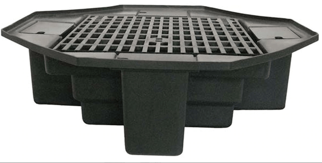 FB58E -Molded support grates have multiple legs for increased load capacity. -Ideal for use with concrete statuary, vases, rocks, and fountains. -Four access doors (On 40″ and larger) allow for multiple pumps, auto-fill, and underwater lights or can be used as plant pockets. -Roto-molded for superior strength. |