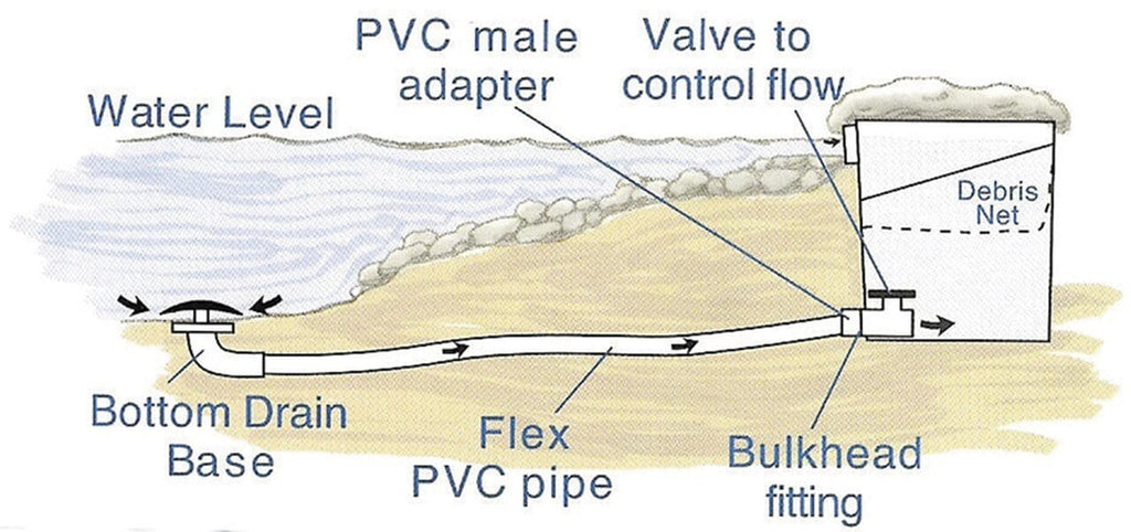 - Kits include bottom drain, bulkhead fitting, valve, and fittings - does not include PVC pipe