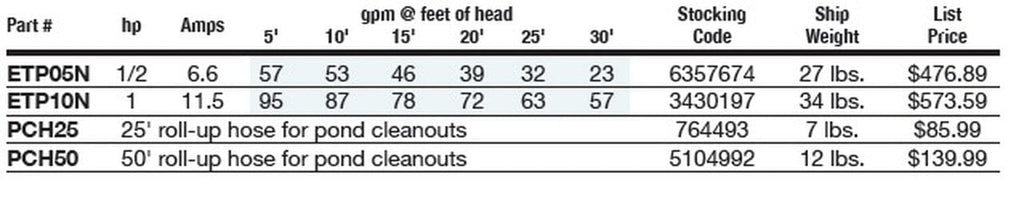 Great for draining and cleaning your koi and garden ponds. The submersible trash pump handles sand, solids, leaves, algae, and other debris up to 3/8" x 1" in size.